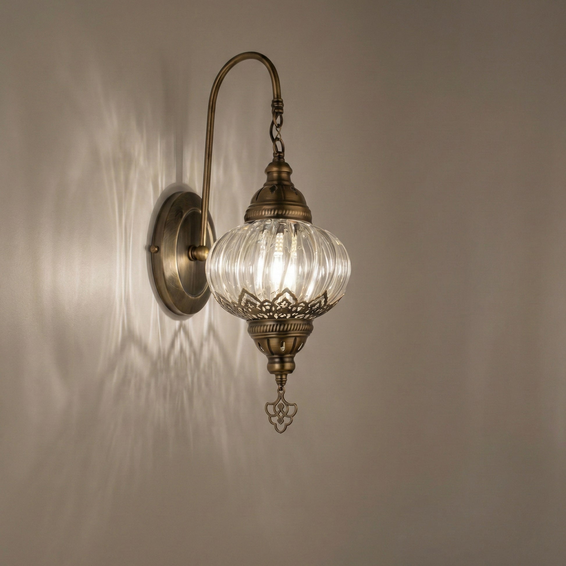 Antique Brass Swan Neck Wall Sconce - Elegant Clear Glass Globe Light for Bedside & Hallway